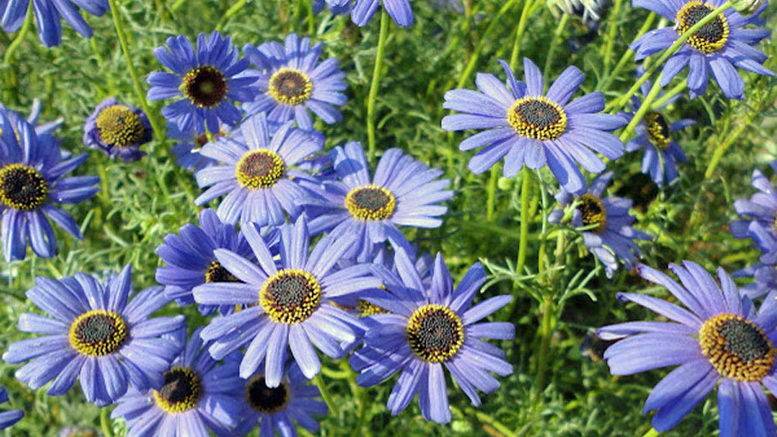 - Stella blu. Questo è un brachicoma blu. È un raccolto rampicante che ha gemme di canna blu brillante.