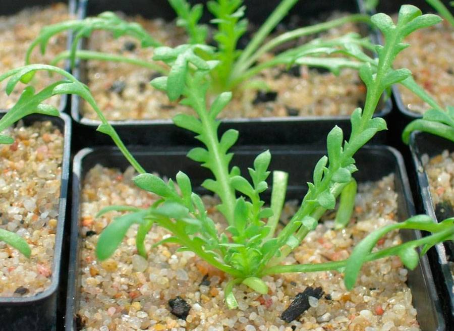 Prima di piantare i semi di un fiore di brachicoma, vale la pena annaffiare il terreno con una leggera soluzione di permanganato di potassio, quindi stendere il materiale di semina e premerlo leggermente sulla superficie del terreno. Dall'alto è necessario cospargere il letto con sabbia grossolana, versarlo con un flacone spray e coprire con vetro o pellicola.