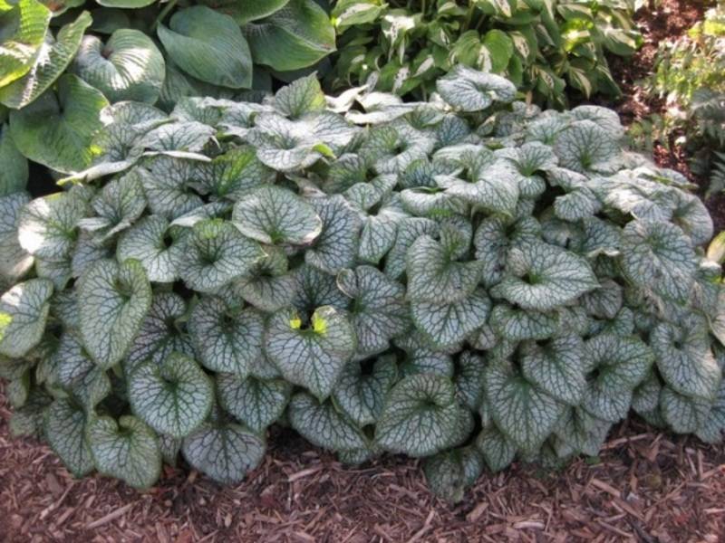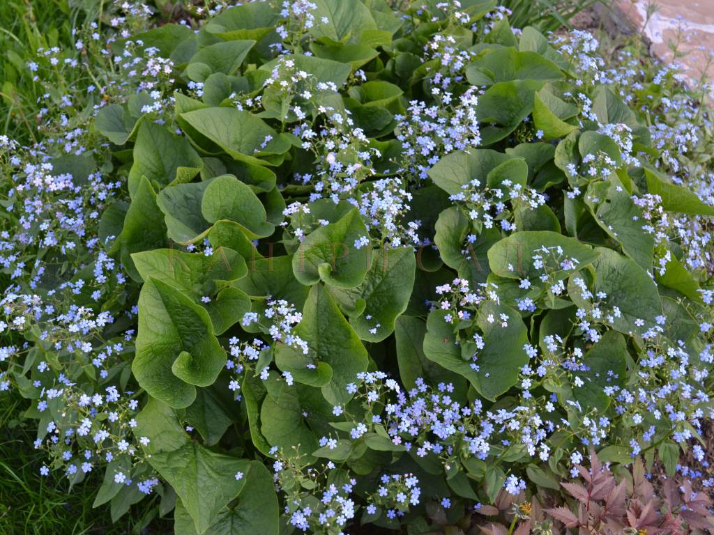 - orientale - brunner sottodimensionato, caratterizzato da un'ottima resistenza alle intemperie. Le foglie sono ellittiche, cresce fino a 10 cm, i fiori sembrano non ti scordar di me.