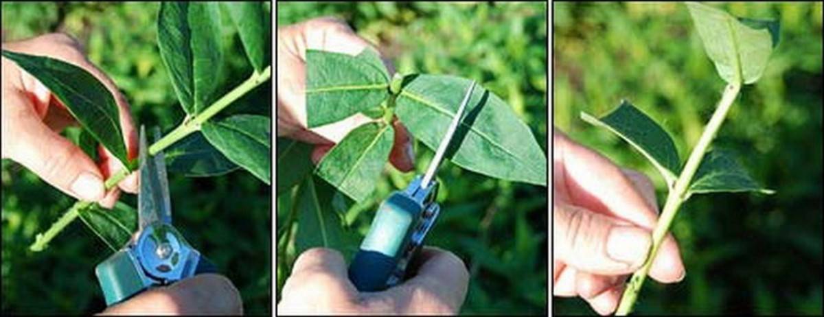 - Il fogliame viene rimosso dai germogli selezionati per la riproduzione.