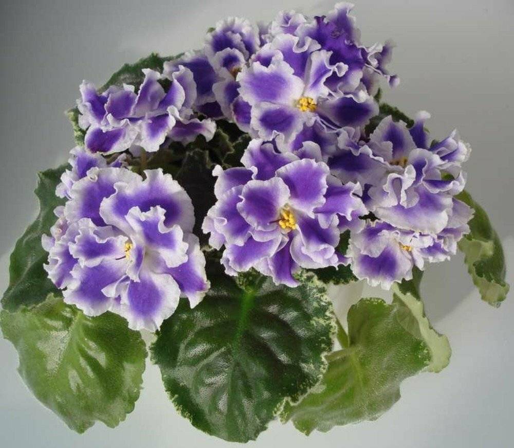 - il fiore è voluminoso e rigoglioso, questo è un dettaglio distintivo di tutte le violette dell'allevatore Morev. Diametro fino a 6 cm, colore viola chiaro con un bordo sottile irregolare bianco e un occhio. La transizione del colore dal bordo al centro è uniforme, ma evidente;