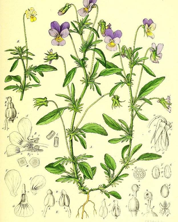 Per il trattamento vengono utilizzate radici, foglie e fiori di viola.