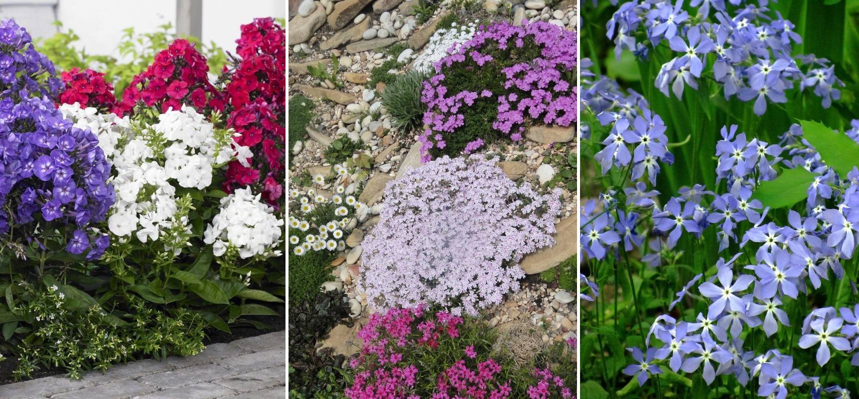 Tra le coperture del terreno popolari, oltre alle varietà di Douglas e subulato phlox, i fioristi chiamano varietà perenni nane, da neve e biforcute. Si riproducono facilmente e tollerano la siccità.