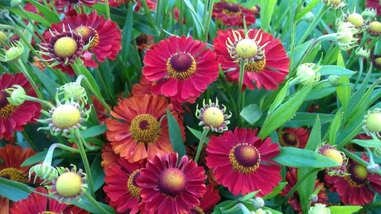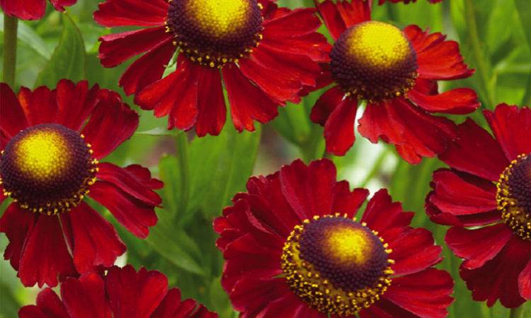 - Rubintswerg. Si tratta di una coltura resistente al freddo che raggiunge i 60 cm Per il Rubintswerg helenium sono caratteristiche le infiorescenze rosso vivo. La fioritura dura 4 mesi;