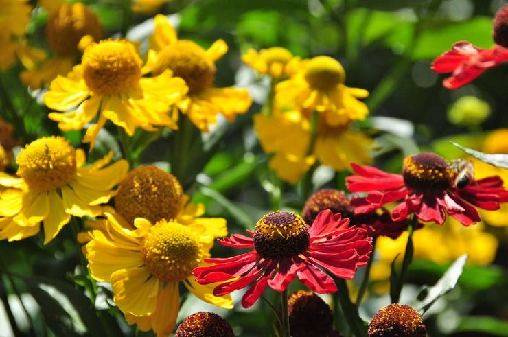 L'Helenium perenne è un'erba che viene spesso utilizzata in orticoltura. I germogli crescono fino a 2 me possono fiorire per tutta l'estate. La cultura ha grandi fiori di diverse sfumature: giallo, rosso, arancione. Decorano il giardino e si sposano bene con altre piante.
