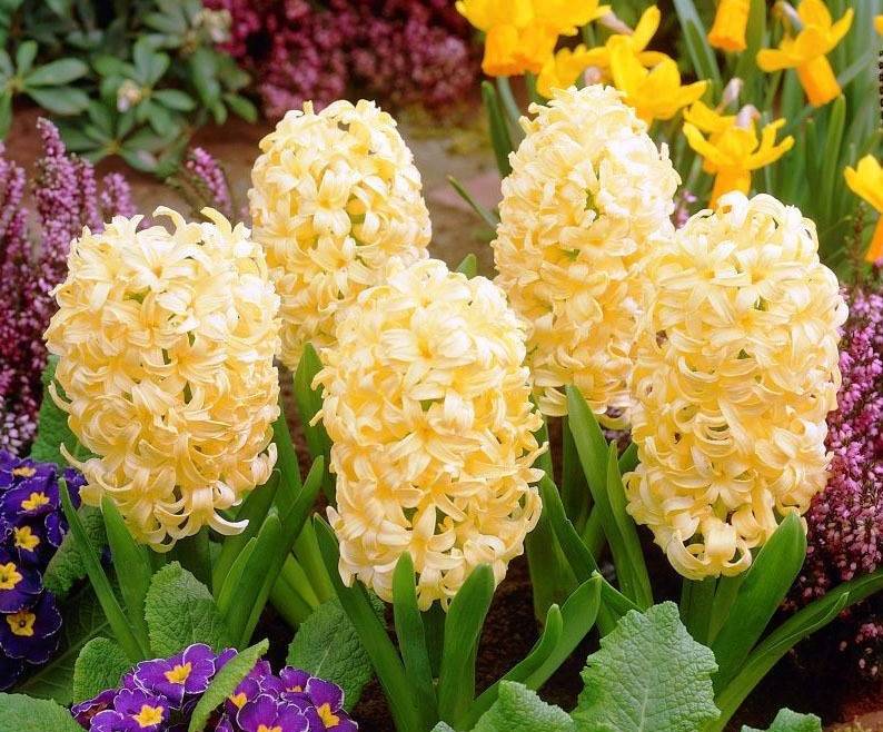 I giacinti sono fiori conosciuti fin dall'antichità. Cos'è il giacinto? Un fiore perenne che viene coltivato all'aperto e in vaso come pianta d'appartamento. Che aspetto ha il giacinto? Un fiore compatto e basso con piatti fogliari xifoidi lucidi. Le infiorescenze sono cilindriche, ciascuna con almeno 15-20 piccoli fiori. Il colore e le dimensioni di petali e boccioli dipendono dalla varietà e dalla varietà.