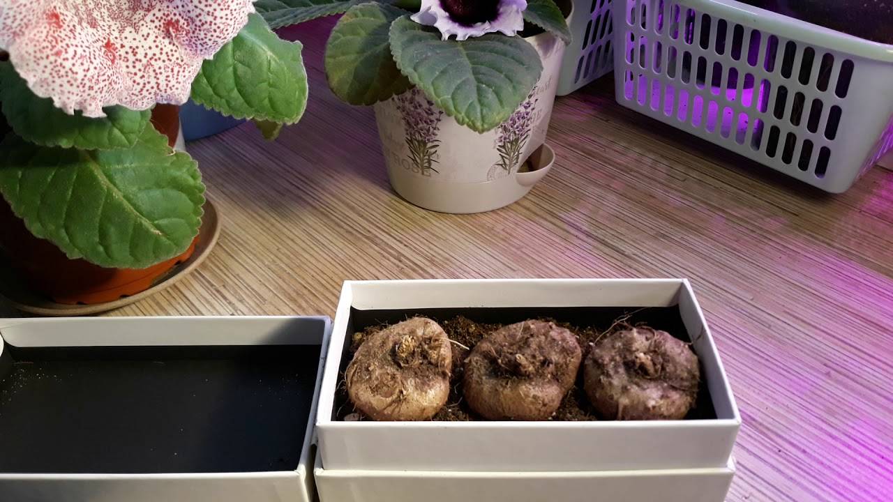 Processo graduale di conservazione dei tuberi di gloxinia in un pacchetto: