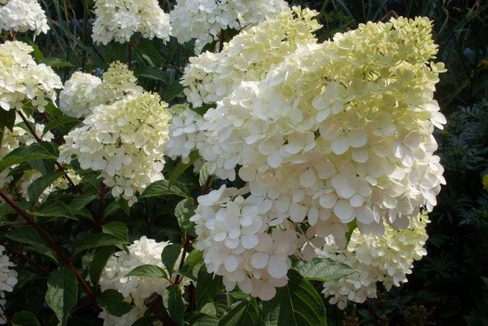 L'Hydrangea paniculata Diamantino (Hydrangea paniculata Diamantino) è un cespuglio denso, alto fino a 1,2 metri. I tiri sono dritti, piuttosto duri. Nonostante la loro altezza, non richiedono giarrettiera o supporto.