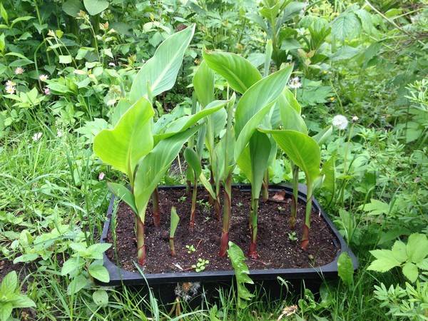 Quando compaiono i primi germogli verdi, il film deve essere rimosso e ogni cespuglio deve essere spostato in un contenitore separato. La sabbia ordinaria è perfetta come terreno. La germinazione dei rizomi in singoli vasi viene effettuata a una temperatura di 16 ° C. Ciò contribuirà a rafforzare i cespugli prima di piantarli nel terreno.