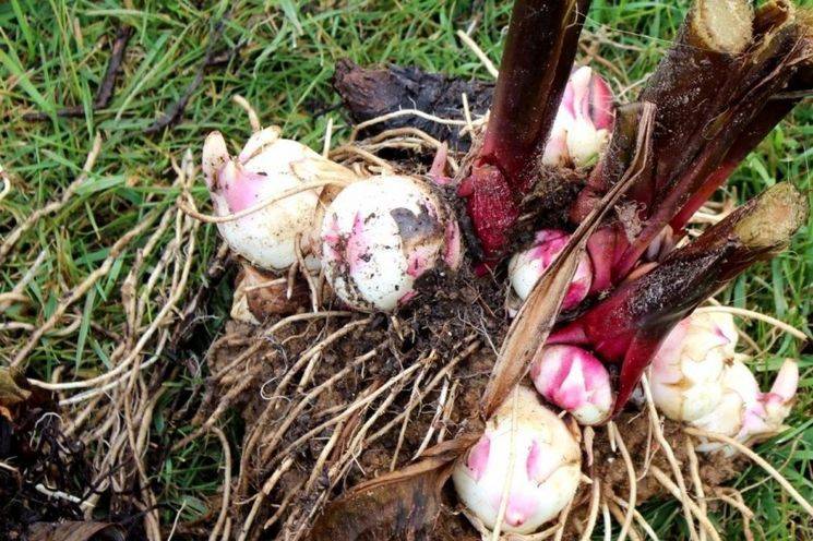 Quindi i rizomi possono essere lasciati per la conservazione a condizioni ambientali o può iniziare la germinazione. Il secondo metodo aiuta ad accelerare la fioritura di 1-2 mesi. In questo caso, i rizomi devono essere posti nella sabbia normale e cosparsi a livello delle gemme. Dovrebbero adattarsi abbastanza strettamente.