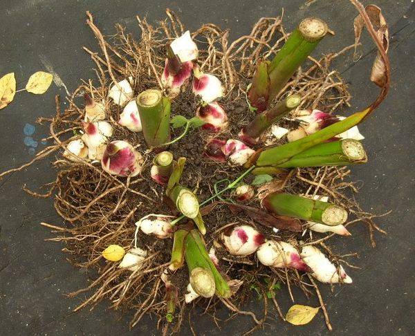 È necessario conservare i rizomi in stanze semi-buie con bassa umidità. Circa una settimana dopo aver dissotterrato la pianta, il suo rizoma deve essere ripulito dal terreno e riposto in appositi contenitori. Sono cosparsi di sabbia, torba e aghi di pino. È necessario conservare i contenitori in una stanza con una temperatura di 6-8 ° C.