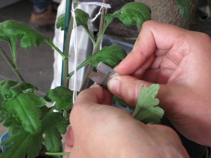 Il modo più comune di propagazione dei crisantemi sono le talee. Per ottenere un gambo, è sufficiente tagliare le riprese sotto la giunzione della foglia e del gambo. L'altezza del ramoscello dovrebbe essere calcolata dai nodi fogliari. Devono essercene almeno 2.