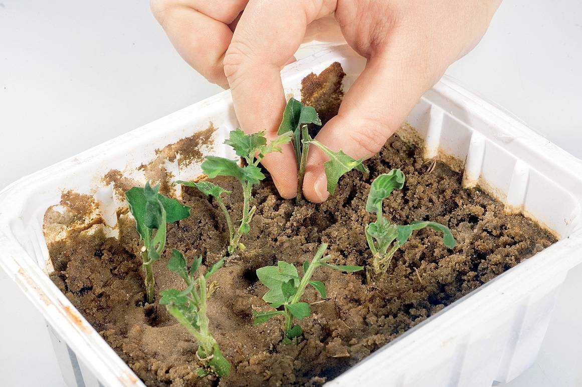 Le talee possono anche essere radicate in terreno sciolto e acido neutro. Prima di piantare, le talee vengono poste in uno stimolatore della crescita per un giorno. Sono sepolti nel terreno di non più di 1,5-2 cm Dall'alto, le future piantine sono coperte da un film. Deve essere rimosso giornalmente ventilando e rimuovendo la condensa.