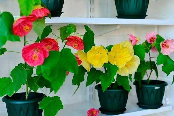 Descrizione dell'abutilone: colorazione di foglie, fiori, ecc.