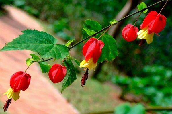 Fiore domestico con foglie come l'acero - abutilone rigato