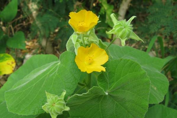 L'arbusto è caratterizzato da fusti corti e morbidi. Foglie cordate con 3-6 lobi seghettati lungo il bordo. I piatti non sono pubescenti, macchie bianche irregolari si trovano lungo i bordi.Dai seni fogliari emergono lunghi picciuoli, sui quali sono localizzati boccioli campanulati con corolla dorata decorata da venature rossastre. I boccioli fioriscono da agosto a settembre.