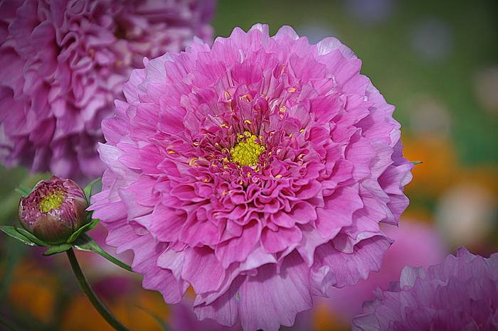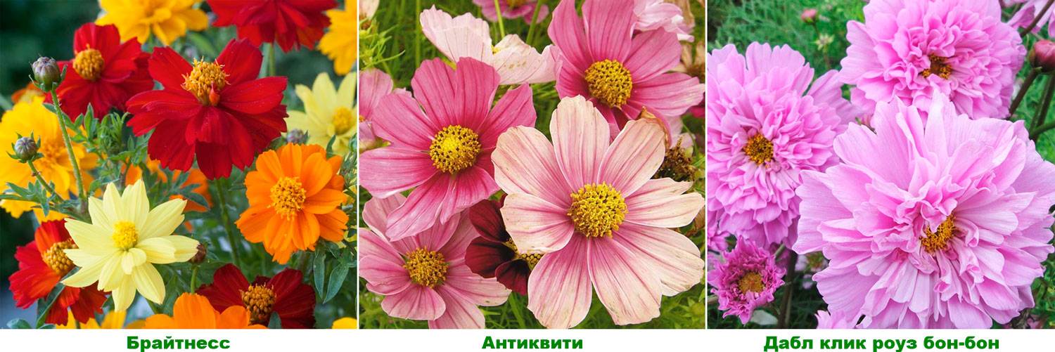 Terry kosmeya in un altro modo si chiama "bellezza cosmica". In altezza, di solito raggiunge 1,5 m, si distingue per i petali di spugna traforata. I fiori possono essere di qualsiasi tonalità: dal bianco al rosso. Le varietà più popolari della specie sono: