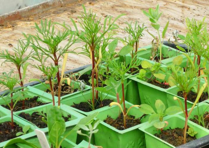 Se tutto è stato eseguito correttamente, i primi scatti appariranno entro una o due settimane. Con un'eccessiva densità di piantine, dovrai diradarle in modo che la distanza tra loro sia da 10 a 15 cm Invece di diradarle, puoi immergerle. Successivamente, le piantine vengono poste in un luogo più fresco.