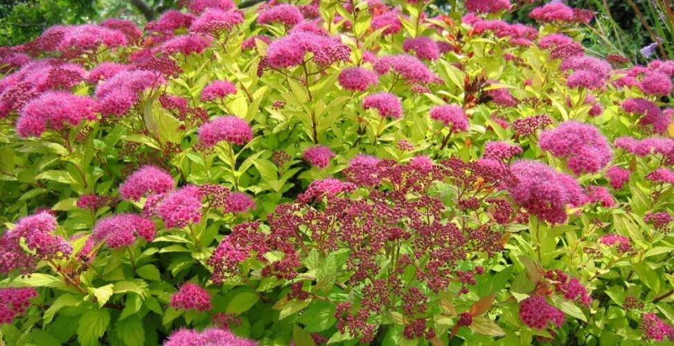 La spirea giapponese (Spiraea japonica) è un bellissimo arbusto con fusti tomentoso-pubescenti. Altezza della pianta 1-1,5 m. La spirea giapponese fiorisce per 45 giorni con fiori rosso-rosa, raccolti in infiorescenze paniculate-corimbo.