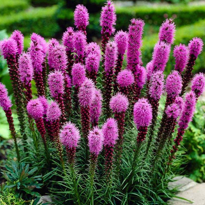 La fioritura perenne dura circa 40 giorni da giugno a ottobre. Per la comparsa delle gemme, la pianta necessita di 14 ore di luce diurna; nelle zone con clima temperato, il cespuglio fiorisce in giugno-agosto. La Liatris, il cui fiore contiene oli essenziali e cumarina, ha un gradevole profumo di fieno appena tagliato con dolci note di vaniglia.