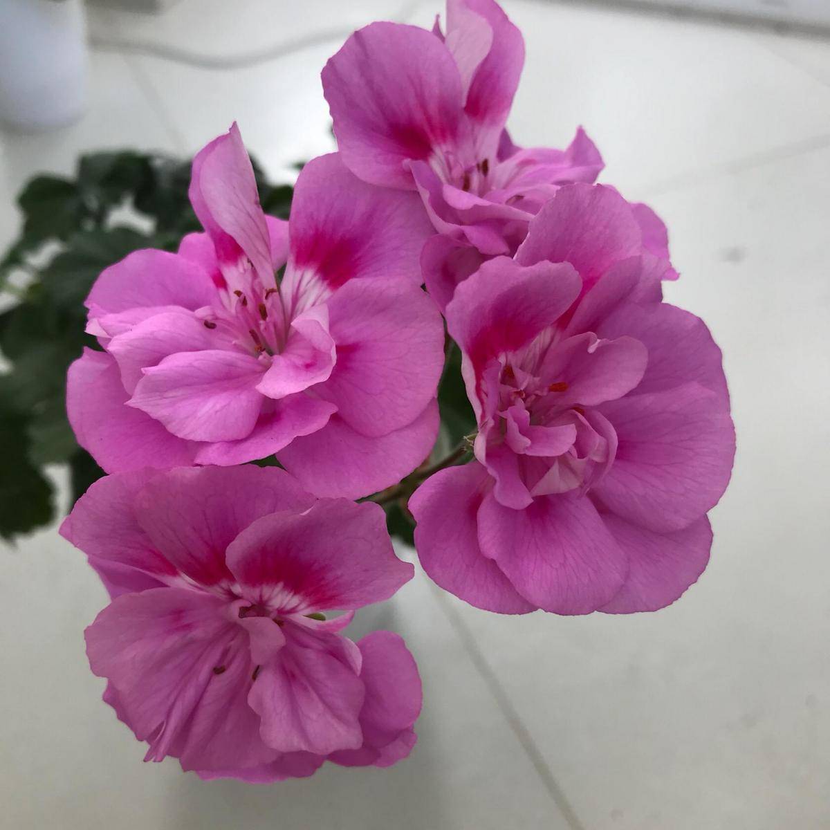 Il Pelargonium Lara Delight è di medie dimensioni e le infiorescenze sono fucsia con un centro bianco. Questa varietà non è rigogliosa come le altre, ma ha un bel colore.