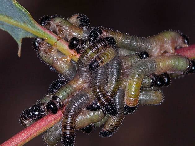| Si deposita in gemme, foglie, gemme. | Le larve dei bruchi si nutrono di gemme fresche, solo in fiore, poi foglie. | Vive sul lato inferiore di una foglia, un germoglio. | Visibile sulle foglie. | Mangiano parti della pianta. |