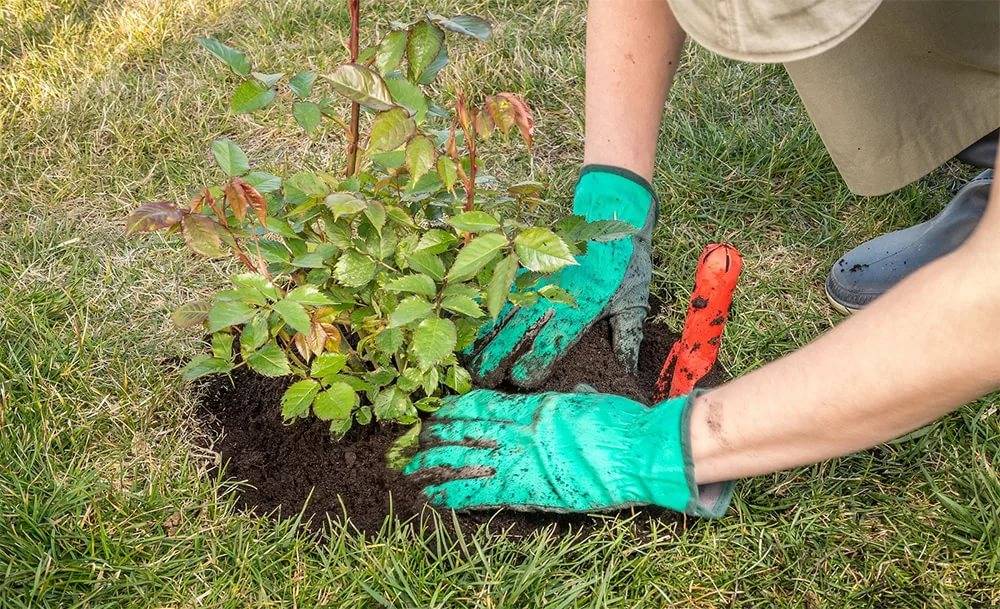 - Aggiungi terreno sotto il cespuglio se si è depositato dopo l'irrigazione e il luogo del rampollo è esposto.