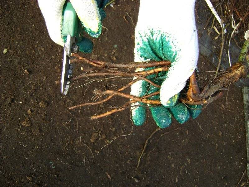 - tagliare parte delle radici, lasciando non più di 40 cm di lunghezza (le sezioni di radici già accorciate vengono aggiornate, rimuovendo un massimo di 1-2 cm);