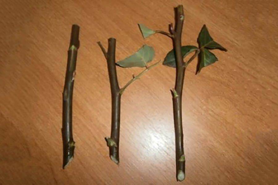 La lunghezza del taglio con tre gemme dovrebbe essere nella regione di 6-9 cm Per evitare un'eccessiva evaporazione dell'acqua, è importante tagliare le foglie di 1/3 della loro lunghezza, togliere la foglia dal fondo. Va ricordato che il taglio deve essere dritto e uniforme e situato a 1 cm sopra il rene, il taglio inferiore è realizzato con un angolo di 45 °. Prima di piantare, le talee vengono poste in una soluzione di eteroauxina e lasciate a bagno per 2 giorni.
