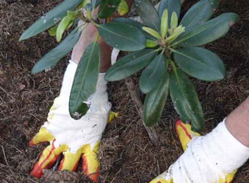 - Le radici del rododendro vengono immerse in un fango liquido a base di acqua e argilla.