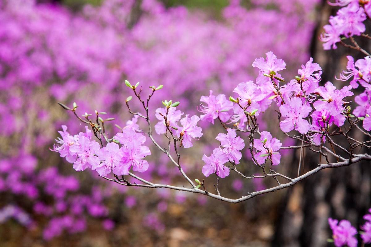 Il rododendro dauriano è un cespuglio ben sviluppato che può raggiungere un'altezza fino a 2 m Rami tentacolari con piccole foglie di forma ovale. In autunno alcune foglie cadono, il resto diventa rosso. Inizia a fiorire alla fine di aprile. Le infiorescenze sono piccole rosa o viola.