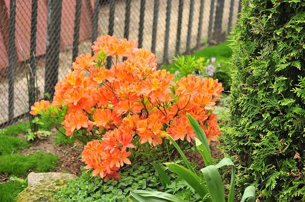 Il rododendro giapponese è stato sviluppato per le regioni con basse temperature. Il cespuglio è alto fino a 1,5 m I germogli sono densamente localizzati. Inizia a fiorire a metà maggio. I boccioli sono grandi, di colore arancione chiaro.