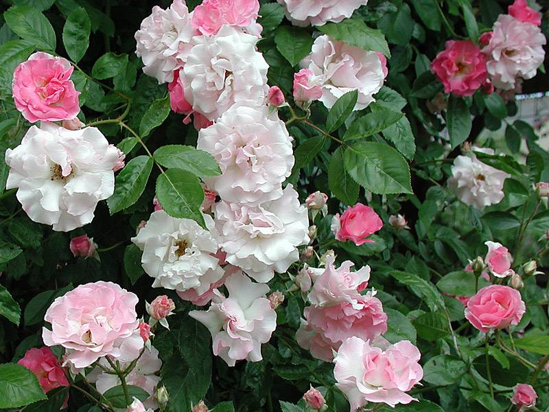 - floribunda. Selezione di polyanthus, tè ibrido, pernetsiano e altre varietà di rose;