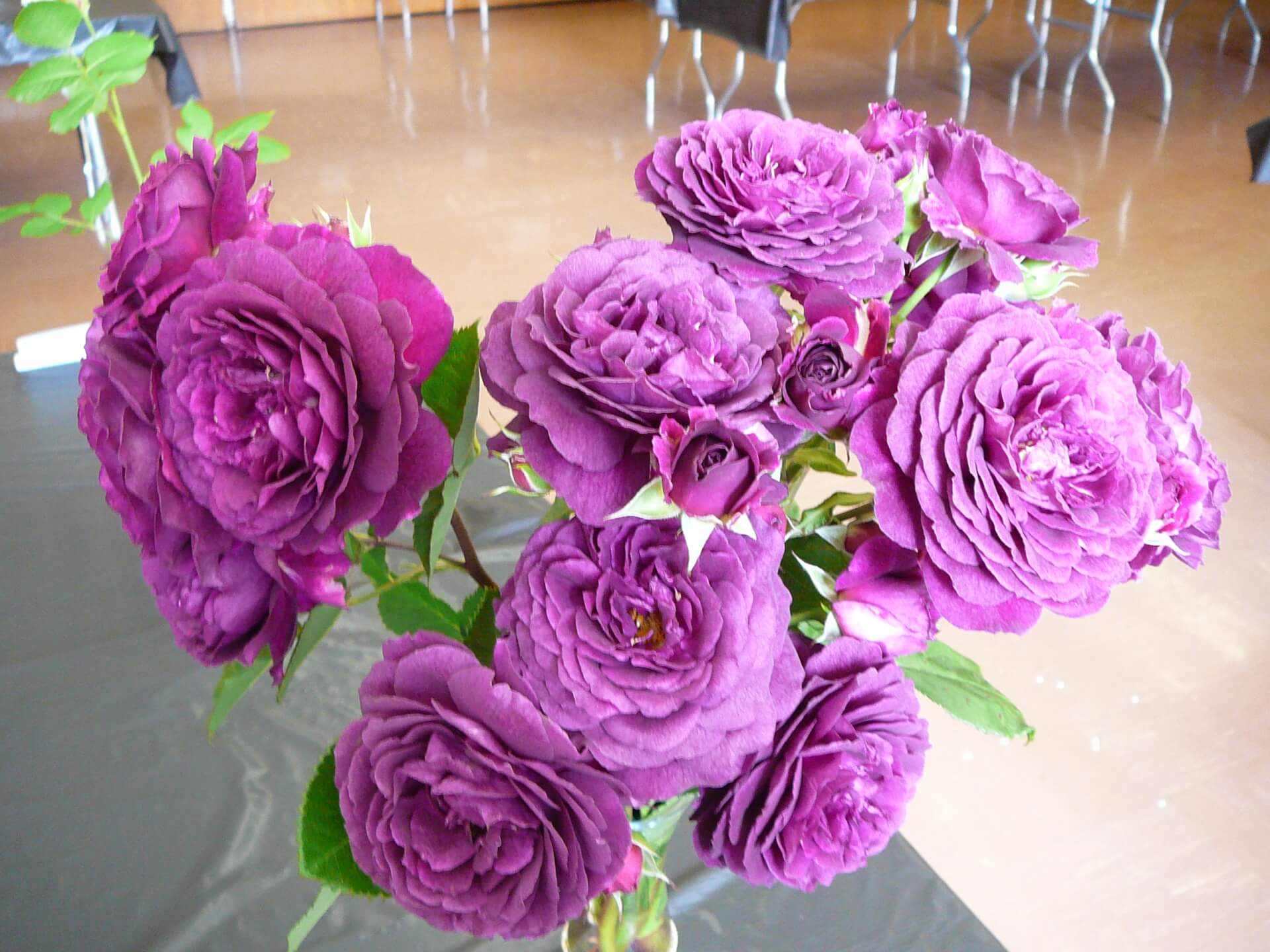 - I fiori sono viola-violacei, con un leggero aroma discreto. In questo, la varietà Ebb Tide supera molte floribunde, che sono caratterizzate da una mancanza di odore.