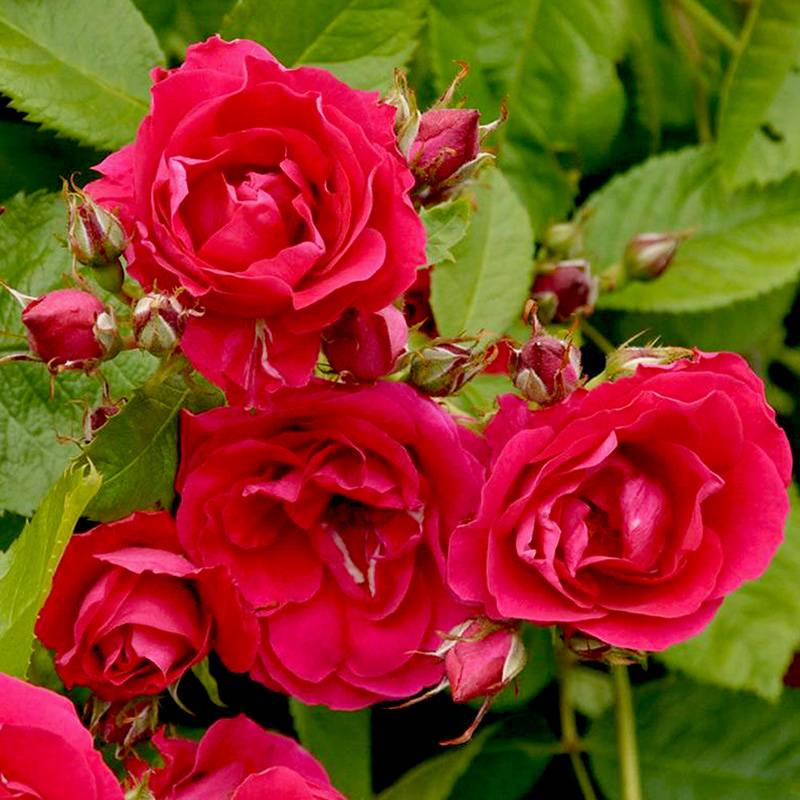 La rosa della varietà Flammentants conquista con fiori rosso vivo e luminosi, raccolti in infiorescenze da 3 a 10 su un pennello. Fiori doppi con un diametro di 8-10 cm, composti da 25-40 petali, emanano un aroma leggero, sottile e delicato. Numerose foglie lucide di colore verde succoso creano uno sfondo degno per i fiori infuocati.