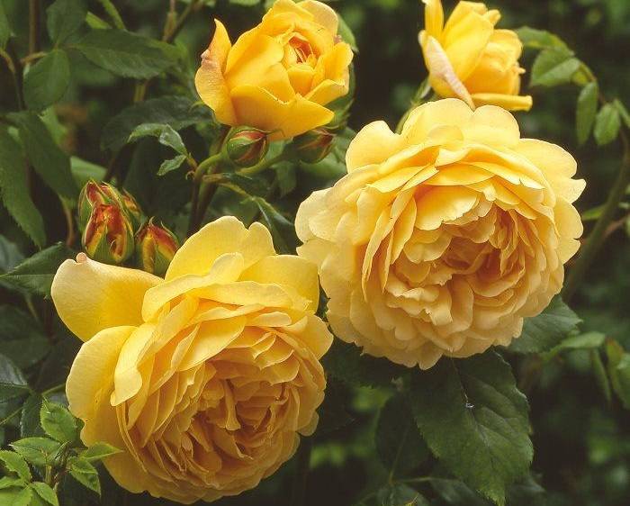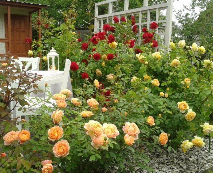 David Austin è noto per lo sviluppo di nuove varietà con proprietà migliorate basate su vecchie varietà di rose. Per attraversare, ha preso il tè o le specie rampicanti. Ci sono rose nella collezione Austin con quasi tutte le tavolozze di colori.