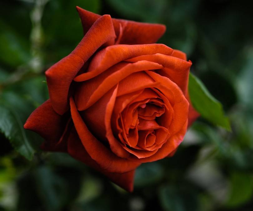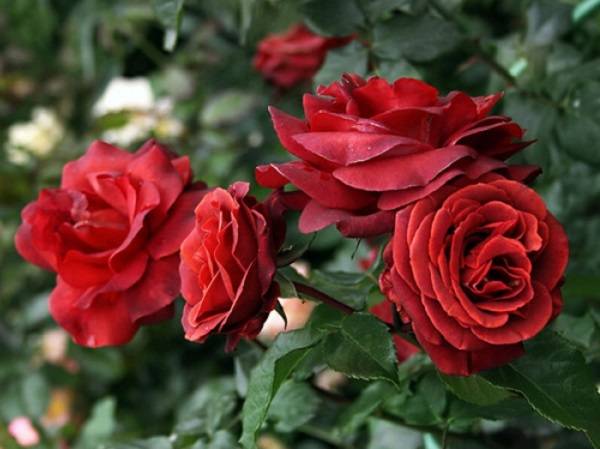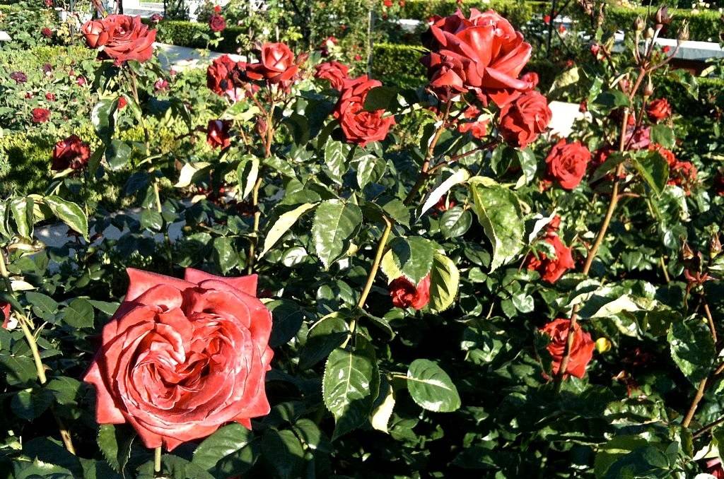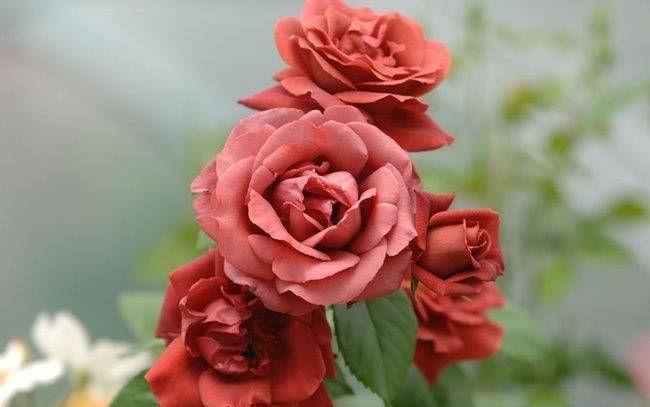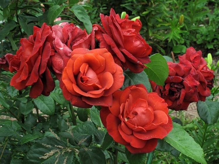 Grandi fiori rosso scuro decorano il giardino come un re. Per il suo aspetto regale, la rosa terracotta è considerata la regina dei fiori.