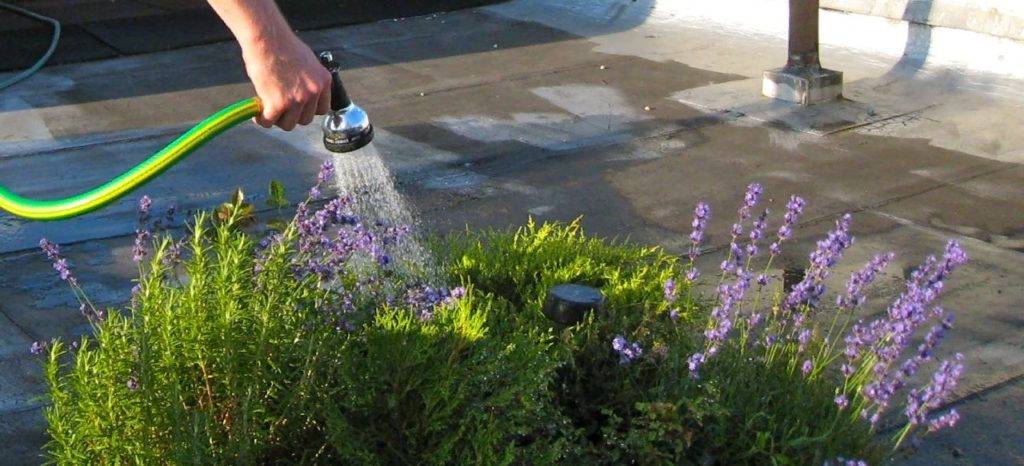 L'irrigazione viene eseguita secondo necessità in un momento in cui la neve non è ancora caduta.Se il tempo è secco, solo allora devi innaffiare le piantine di lavanda con un po 'd'acqua. In inverno, il terreno è alimentato dalla neve.
