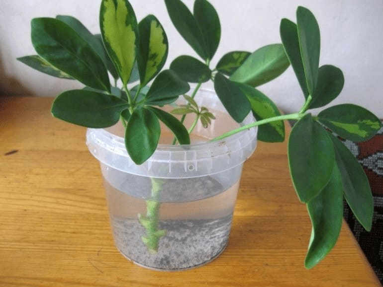 Quando si prende cura di una sheflera, è importante ricordare che la linfa delle piante può causare dermatiti. Se prevedi di pizzicare o trapiantare manipolazioni, devi indossare i guanti.