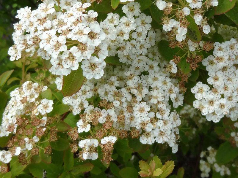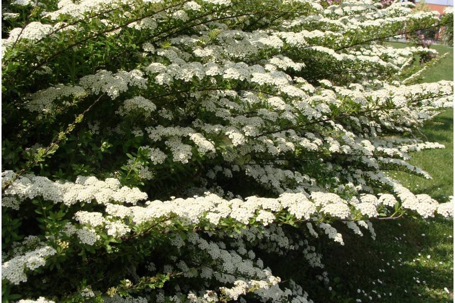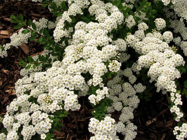 - White Carpet (White Carpet spirea) è una varietà a crescita bassa, non supera gli 80 cm, fiorisce molto abbondantemente, ha un bell'aspetto sotto forma di una staccionata.