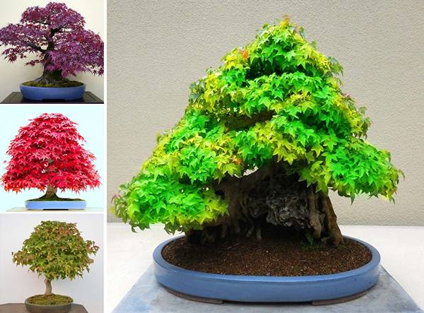 Pada jenis pokok inilah daun tumbuh sesuai dengan ukuran yang diperlukan untuk bonsai. Perlu diingat bahawa maple bonsai mempunyai ciri yang sama dengan saudara biasa. Ini bermaksud bahawa pada musim luruh semua daun gugur, dan tanaman itu menjadi tidak aktif pada musim sejuk. Maple juga cukup umum, mahkota berwarna merah. Tetapi maple merah biasa mempunyai keperluan penjagaan yang lebih menuntut, kerana daunnya rendah klorofil.