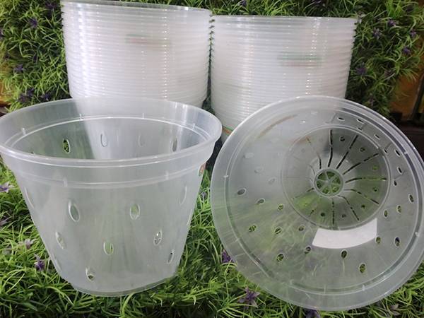 Bekas orkid berbeza dengan periuk untuk tanaman lain. Masalahnya adalah penting bagi akar untuk menyediakan aliran udara yang tidak terhalang, tanpa akarnya cepat mati. Mereka kehilangan warna kehijauan semula jadi, menjadi kelabu, kering dan rapuh. Oleh itu, bekas yang ideal mempunyai banyak lubang besar di bahagian bawah dan dinding, dan juga mesti menghantar cahaya.