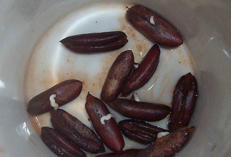 Tulang ditanam dalam kedudukan tegak, yang ujungnya tidak menjadi masalah, kerana pucuk muncul dari tengah tulang. Ia diperdalam ke dalam tanah sehingga ada lapisan tanah sekurang-kurangnya 1 cm di atas tulang. Benih akan bercambah di tanah dari 30 hingga 90 hari. Sepanjang tempoh ini, tanah di dalam periuk harus dibasahi sedikit. Bumi disiram setelah lapisan atasnya mulai kering. Stagnasi kelembapan di bahagian bawah bekas penanaman tidak boleh dibenarkan.