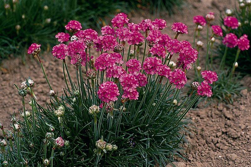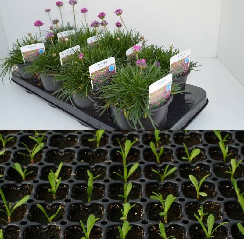 Menanam anak benih Armeria di tanah terbuka