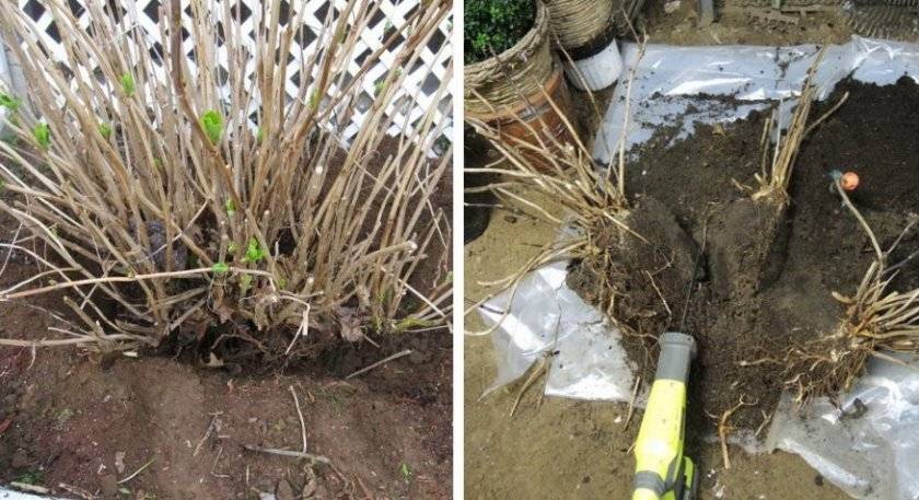 Prosedur ini dilakukan pada awal musim bunga, sehingga pertumbuhan aktif hidrangea bermula. Tanaman harus digali dengan teliti tanpa merosakkan sistem akar dalam prosesnya. Akar itu sendiri terbahagi kepada 2-3 bahagian, sehingga terdapat beberapa titik pertumbuhan pada setiap bahagian.