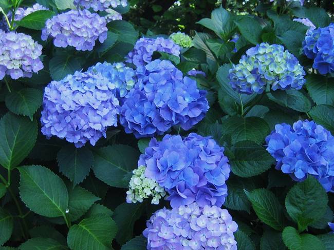 Hidrangea biru berdaun besar dapat mengumpulkan aluminium dari tanah berasid. Inilah yang memberikan bunga biru kaya warna.Kini, banyak jenis hidrangea yang diketahui. Hidrangea Langit Biru dan spesies lain sangat popular.