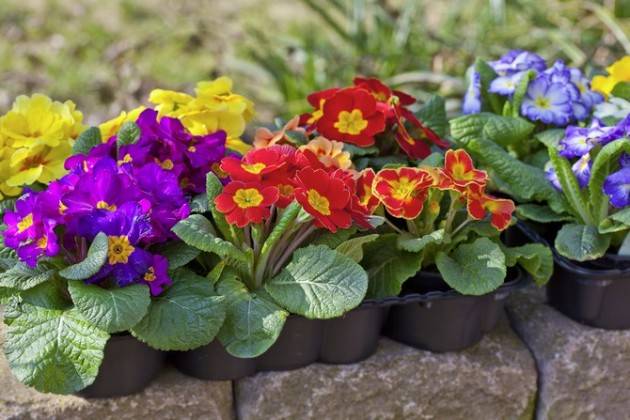 Anda boleh membeli primrose dalam pelbagai jenis perbungaan dan menanam di ambang tingkap atau periuk yang sama dengan campuran bunga.