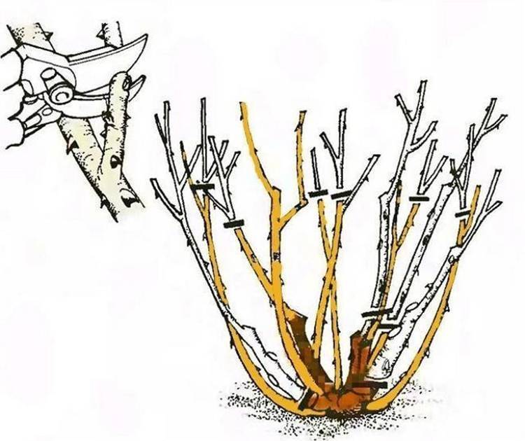 Perhatian khusus harus diberikan kepada pemangkasan musim bunga. Semasa prosedur, anda perlu meninggalkan kira-kira 4-5 batang kuat dengan masing-masing 8 tunas. Lebih baik membuang pucuk yang rosak dan lemah sehingga pembersih tidak membuang tenaga pada mereka. Perlu dipendekkan ketinggian tanaman menjadi 40 cm. Pemindahan dibuat setiap 3 tahun.