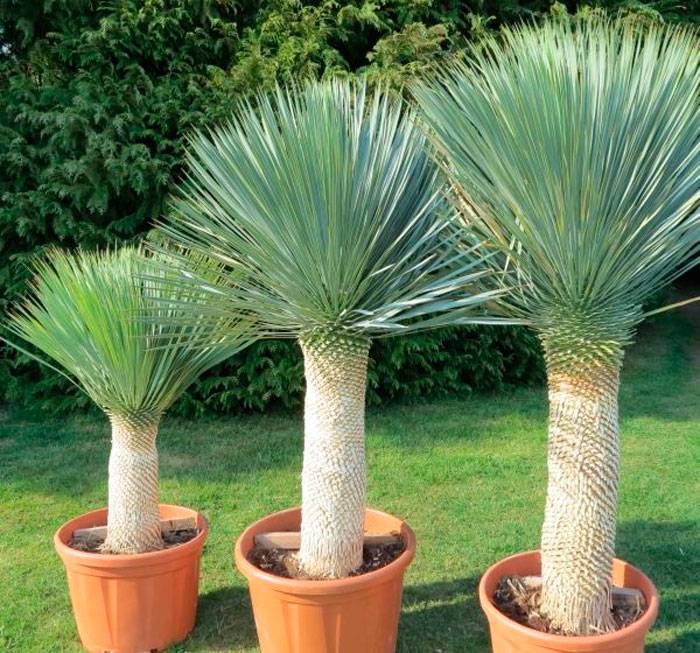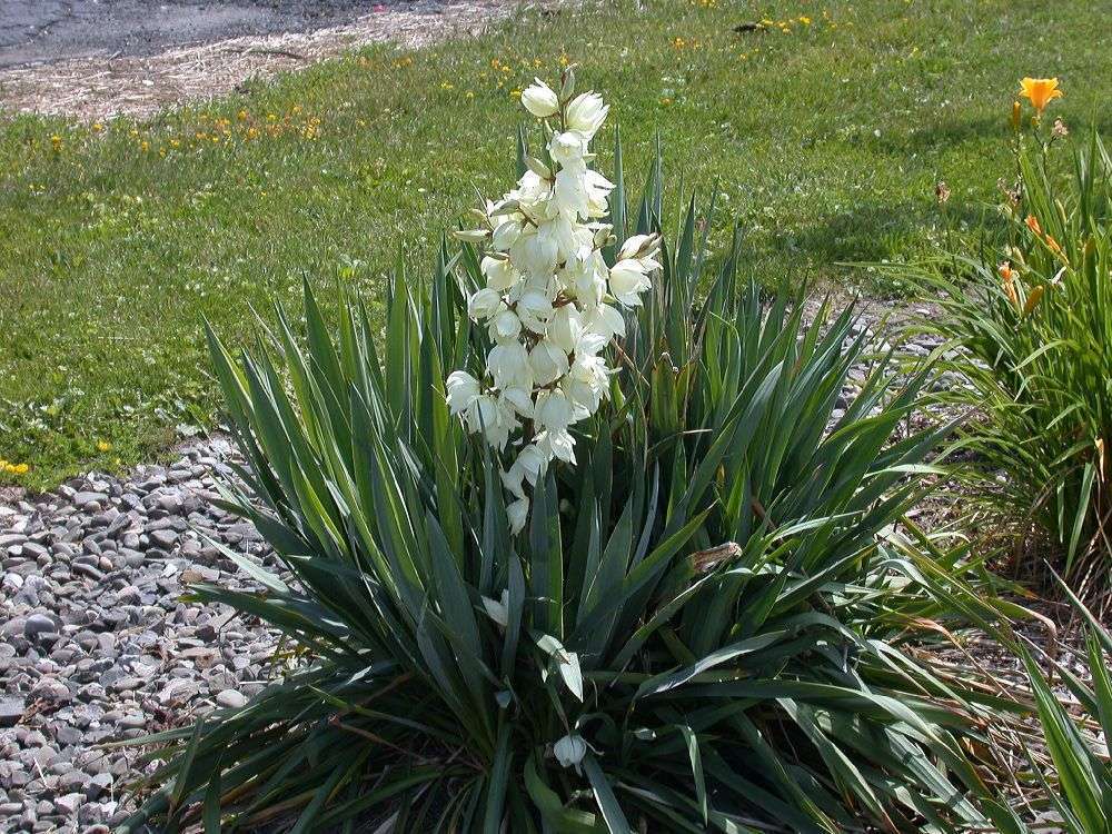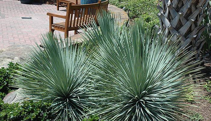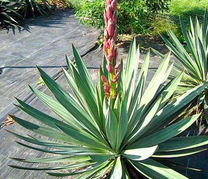 - Yucca kelabu adalah sejenis budaya hiasan, tingginya mencapai 200 cm. Pantai barat Amerika Syarikat dianggap sebagai tanah air yucca kelabu. Panjang bilah daun adalah dalam jarak 55-65 cm. Permukaan daun berwarna hijau tua dengan warna kebiruan. Jisim hijau dikumpulkan dalam soket pukal. Semasa berbunga, ketinggian bunga panikulat mencapai 80-100 cm.