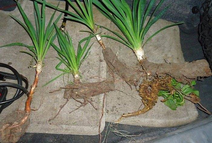 Untuk pembiakan dengan kaedah ini, anda boleh menggunakan yucca dewasa. Bahagian atas pokok dipotong dengan pisau tajam. Kawasan pemotongan disalurkan dengan arang batu yang dihancurkan. Bahagian batang yang dikeringkan dikeringkan selama 12-14 jam di bilik yang sejuk. Kekosongan itu diakar dalam balang berisi air rebusan. Sebaik sahaja akar mula muncul di dahan, anda boleh mula menanam yucca.